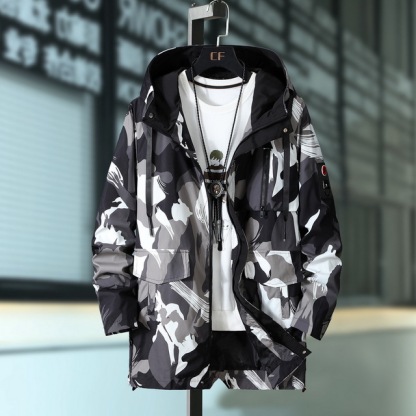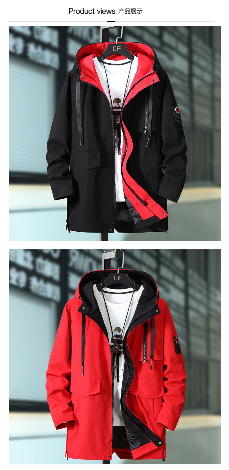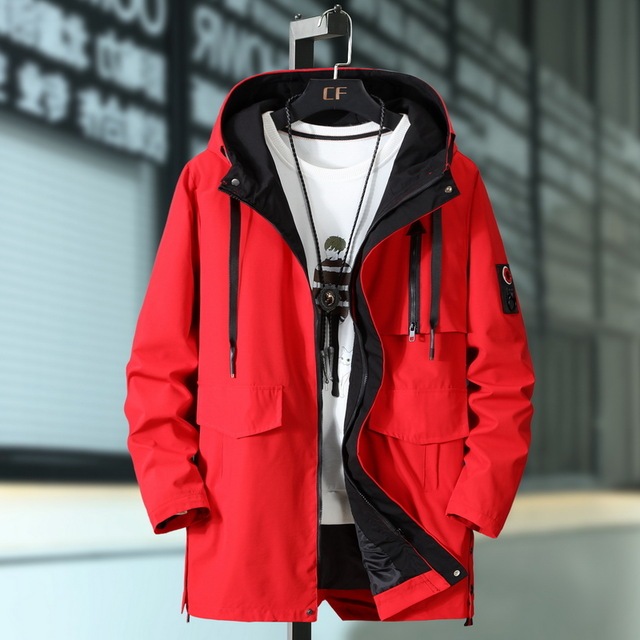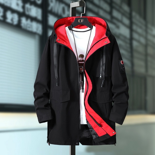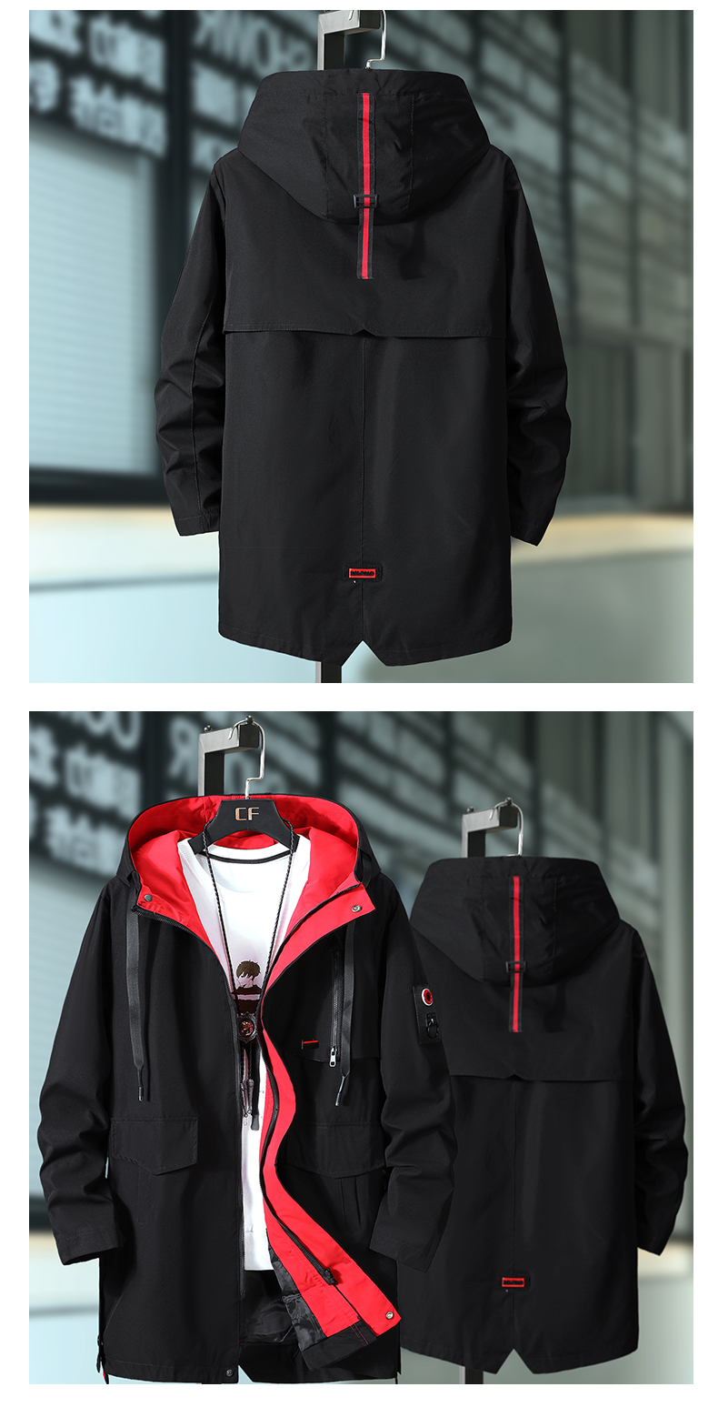 large size autumn overcoat long hooded windbreaker male jacket men's tooling jacket