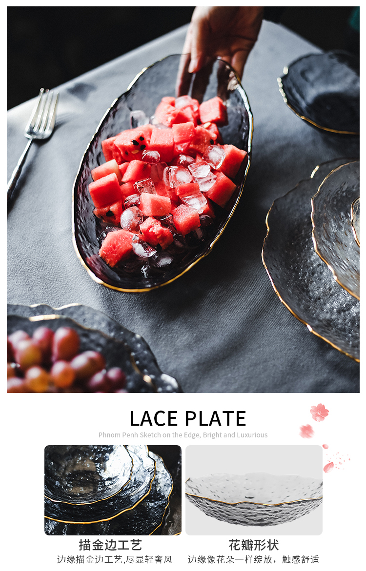 Modern Light Luxury Phnom Penh Glass Fruit Plate Living Room Home Modern Creative Glass Salad Bowl Dessert Bowl Fruit Plate